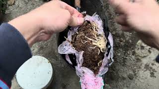 高壓的紅毛丹,根系長得不錯,不過怕冷的植物這時候盆植不知能否成功?2026年1月25日