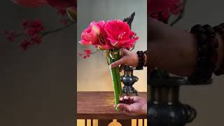 红纱帐里透芳香,碧叶丛中缀锦囊。Fragrance drifts through red gauze; bright blooms glimmer among green leaves.